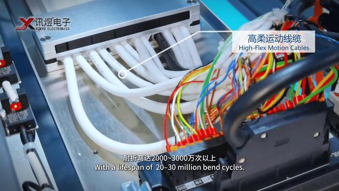 訊煜電子專注于無塵拖鏈、潔凈高柔運(yùn)動(dòng)排線、真空線纜、潔凈線纜、高柔運(yùn)動(dòng)線纜等產(chǎn)品的研發(fā)和生產(chǎn),為了確保產(chǎn)品的穩(wěn)定可靠,每款產(chǎn)品都要經(jīng)過自主研發(fā)的耐折彎測試機(jī)進(jìn)行數(shù)千萬次高強(qiáng)度耐折彎測試,鑄就高品質(zhì)、可信賴產(chǎn)品。
